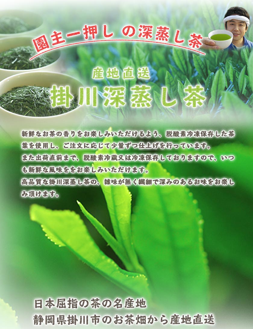 The new tea is scheduled to be delivered around the beginning of May. It may take about a week depending on the weather.This is a fresh tea gift made from deep-steamed tea from Kakegawa City, which won the "Production Area Award" at the National Tea Fair.