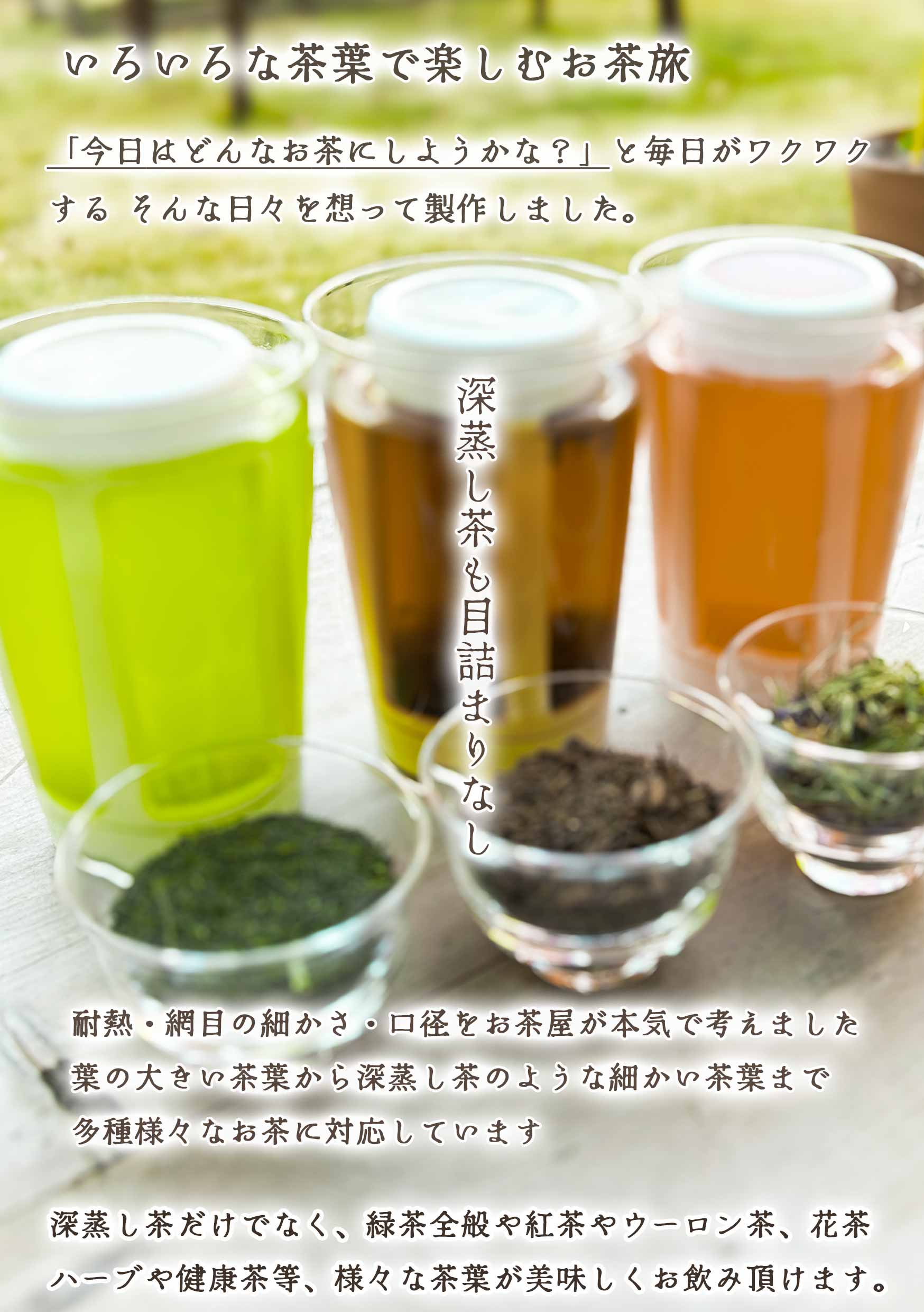 ![[Enjoy a tea journey with various tea leaves] What kind of tea should I make today? Every day is exciting. We created this product with such days in mind. [Not even deep-steamed tea is an eye-opener] A tea shop seriously considered heat resistance, visibility of the mesh, and the masses. It can handle a wide variety of teas, from tea with large leaves to fine tea leaves like deep-steamed tea. / Not only deep-steamed tea, but various tea leaves such as green tea, black tea, oolong tea, flower tea, herbs, and health teas can be enjoyed deliciously.](https://image.rakuten.co.jp/kimuraen/cabinet/11057973/m2-08.jpg)