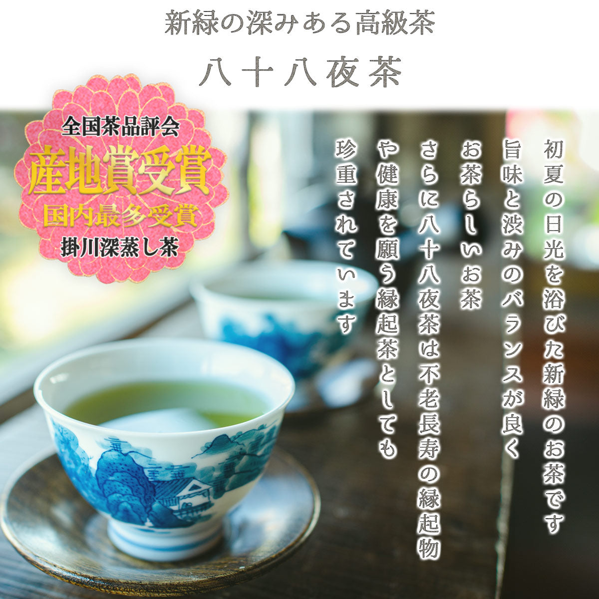 In addition, Kakegawa deep steamed tea is rich in catechins, and 88 night tea is a lucky charm of eternal youth and longevity, so it is highly recommended as a gift to wish for health and longevity.